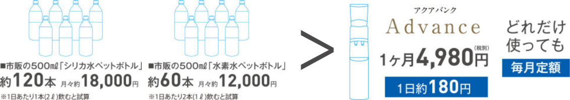 365日24時間、良質なミネラル・シリカ水素水をお楽しみ頂けます。