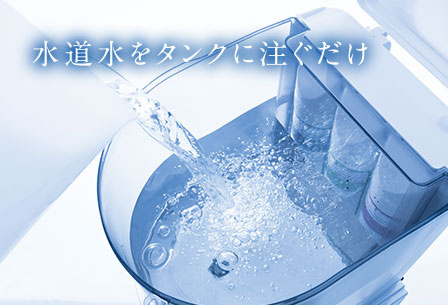 使用方法はタンクに水道水を注ぐだけ。
