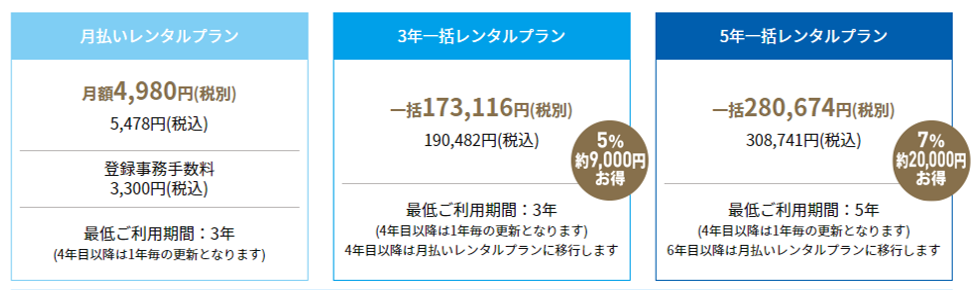 ※お支払いはクレジットカード払いとなります。法人一括レンタルプランのみ請求書対応が可能となります。